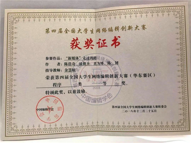 2018—2019学年:第四届全国大学生网络编辑创新大赛全国三等奖