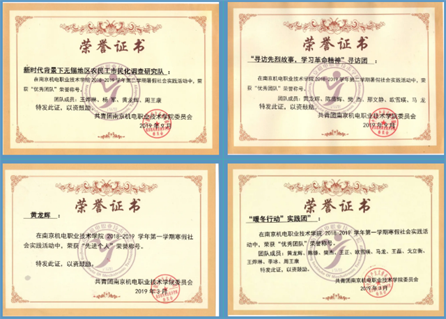 入学以来荣获:国家励志奖学金、江苏省“互联网+”大学生创新创业大赛三等奖、南京市第五届青年大学生创业计划书大赛最佳创意奖、南京创新周大学生创新创意作品展青创英才奖、学院三好学生、优秀学生干部、优秀共青团员等多项荣誉。以第一发明人获得专利受理一项,并积极参加志愿服务活动。