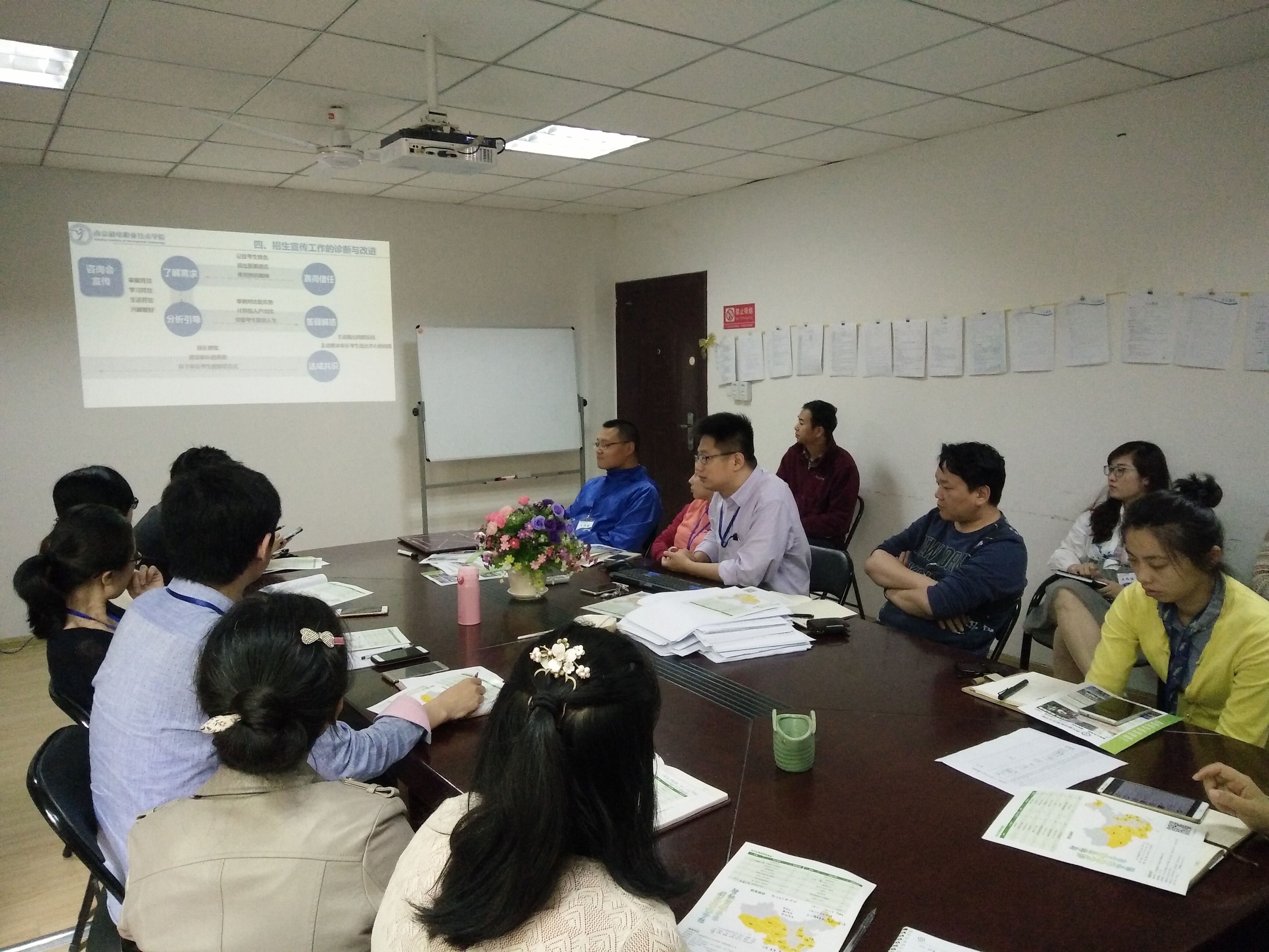 会议由信息工程系王玮主任主持,在分析了今年的招生形势、学院和我系的招生目标任务后,学院招生就业办公室殷凯老师就招生宣传工作进行了全方位的培训。指导参与招生的全体成员,在宣传方向、招生方法、组织生源的途径等方面作了详细的讲解。