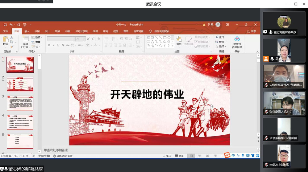 5月12日晚19点,亚搏在线信息工程系党支部组织21级先进团员开展线上学习,学习内容为中共一大会议精神,我院思政中心董志鸿老师为主讲老师。