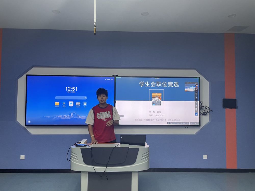 会议开始,贺老师对各部门一年来的工作给予了肯定并颁发聘书,同时在竞选开始前表达了自己对学生未来发展设想及对所有同学的美好祝愿,希望学生会成员都能利用好学生会这个组织平台,有所成长、有所进步,展现最好的自己,服务同学、服务系部、服务学校。