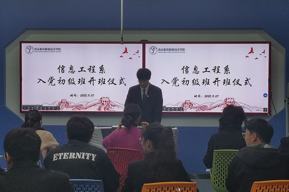 为切实做好入党积极分子的培养教育工作,提高入党积极分子的思想政治素质,端正入党动机,切实把好党员队伍的“入口关”和“质量关”, 11月7日中午在博学楼411,亚搏在线信息工程系入党积极分子初级培训班正式开班。信息工程系党支部书记胡枫老师、信息工程系党支部组织委员俞宝莹老师、信息工程系党支部纪检委员刘娴老师、信息工程系党支部宣传委员卞志勇老师出席开班仪式、系部各班级入党积极分子参加此次培训,开班仪式由信息工程系团总支秘书长王重重主持。