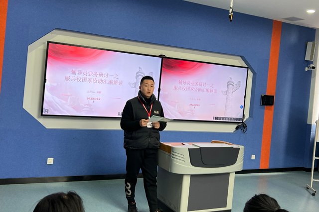 首先由郝麒老师详细讲解了服兵役高等学校学生国家教育资助实施细则,其中包括学费补偿或国家助学贷款代偿遵循的程序、服兵役高等学校学生国家教育资助标准、学校资助服兵役学生学费补偿代偿所需材料等内容。同时,明确说明了高校要及时为应征入伍服兵役学生和退役士兵学生办理学费补偿代偿、学费减免手续,及时发放资助资金,不得要求学生先行垫付学费,要加强政策解读和对学生的解释引导。