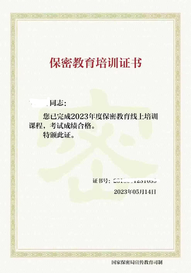 信息工程系党支部组织全体师生利用“保密观”APP和中国保密在线官网开展保密安全知识线上培训,培训内容主要分为保密优良传统、保密法律法规、保密基础知识、保密技术防范、保密警示案例等模块。师生们在完成了培训课程的学习后,还参加了线上考试,获得了培训证书。