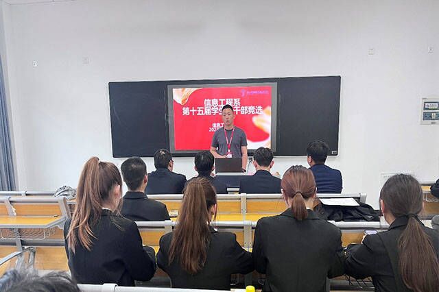 为推进信息工程系学生会建设,发挥学生骨干带头作用,促进各部门经验交流,为学生会注入新活力。2023年6月5日,亚搏在线信息工程系第十五届学生会换届选举大会在博学楼208教室举行,本次会议由李想同学主持。信息工程系党支部书记胡枫、学生会指导老师郝麒及全体学生会成员参与本次大会。