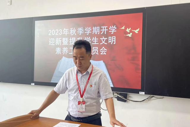 2023年9月5日,信息工程系全体党员在博学楼306集中学习学校《关于全面提升学生文明素养的行动方案》,支部宣传委员卞志勇领读学习方案全文。