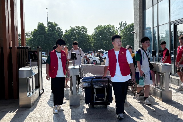 在城市的交通枢纽 —— 高铁站,我们的老师和志愿者们早已守候在此。他们高高举起标识牌,那醒目的字迹在人群中格外引人注目。他们目光敏锐,时刻关注着出站的人群,生怕错过任何一位新生。每当看到新生的身影,他们便会立刻迎上前去,热情地打招呼,帮忙提拿行李,让新生们在踏入这座陌生城市的第一刻,就感受到了来自学校的关怀与温暖。