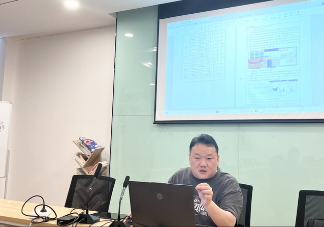 随后,施炜老师围绕精品课程建设路径与各位老师深入交流与分享。他分别从课程设计理念、教学内容优化、教学方法创新、教学资源整合以及实践教学环节等多个维度,阐述了精品课程建设的核心要素与实现路径。并且分享了精品课程建设的具体案例,如《新媒体运营》精品课程的建设思路和已取得成果,这些案例为其他教师提供了宝贵的参考和借鉴。教师们纷纷就自己在课程建设过程中遇到的问题和困惑提出疑问,现场气氛热烈而活跃。大家表示,此次教研活动不仅拓宽了视野,也激发了教学创新的灵感与动力。