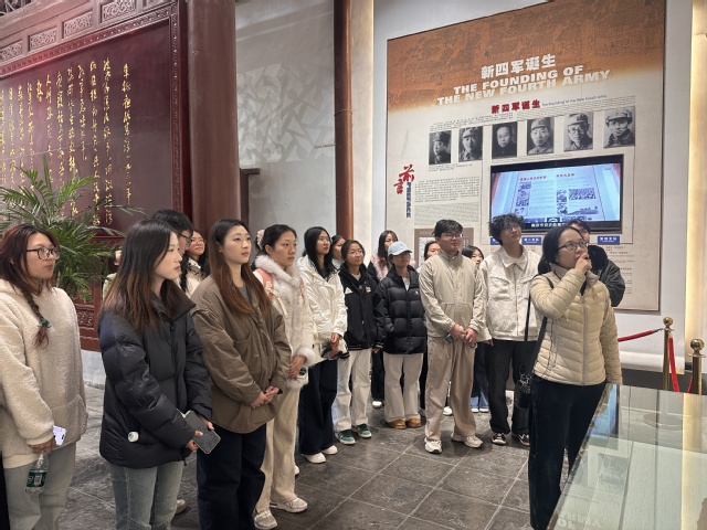 在纪念馆讲解员的引导下,师生们怀着崇敬的心情有序参观。从新四军在高淳建立抗日根据地的艰难历程,到将士们使用过的武器装备、撰写的战斗日记,再到当地群众支援前线的感人故事,每一件实物、每一段文字、每一幅画面都深深触动着在场学生。大家认真聆听讲解,不时驻足凝视、交流感悟,在历史的回响中深刻体会革命先辈们为民族独立和人民解放所付出的艰辛努力,进一步理解了“坚定信念、听党指挥、为民造福、百折不挠” 的新四军精神内涵。