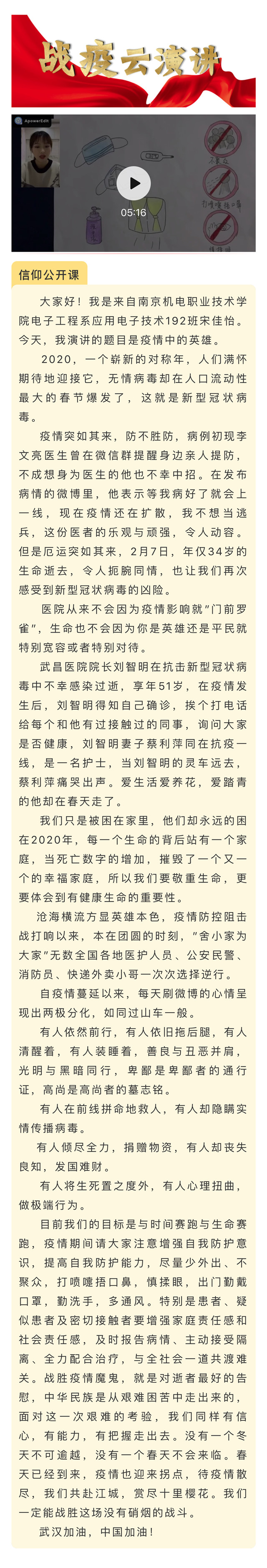 【信仰公开课】电子工程系团总支|疫情中的英雄
