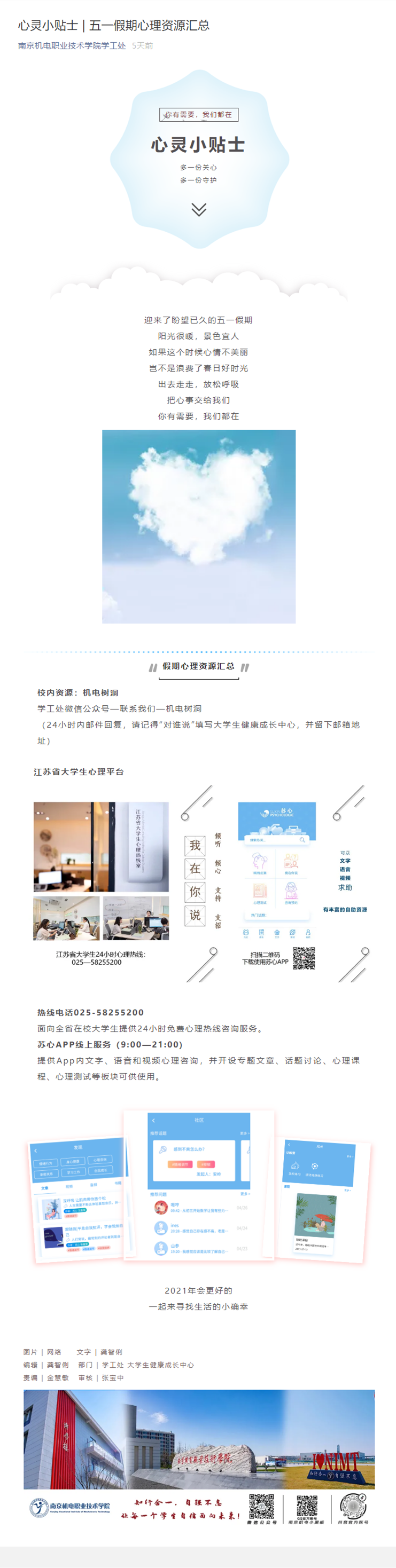 心灵小贴士 | 五一假期心理资源汇总