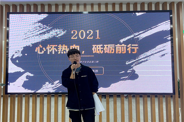 为展示我院优秀学子风采,分享成功经验,助力我院学生在求知路上不断进取,开阔眼界。由学工处主办、院学生会承办的第三期优秀学子分享会于2021年5月13日星期四18:30在蓝岛餐厅一楼举行。本次优秀学子分享会由环艺191班范雨亭同学、软件191班邵蒋泽同学担任本次活动的主讲人。由院学生会宣传部副部长李晨舟担任主持人。院学生会主席戚彬盛及各系五十余名同学参加本期分享会。