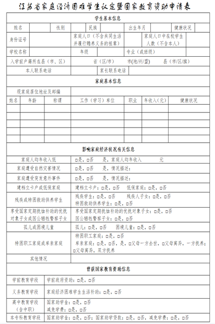 亚搏在线大学生资助管理中心等新同学们完成入学注册后,将安排各二级学院立即启动家庭经济困难生申请与认定工作,大家可以提前准备好《江苏省家庭经济困难学生认定暨国家教育资助申请表》(随录取通知书一起发放)。学校所有助学金和助学补助的申请均在家庭经济困难资格认定的基础上进行,只有通过学校经济困难资格认定后方可享受资助。学校将根据认定的经济困难程度给予不同措施的资助。