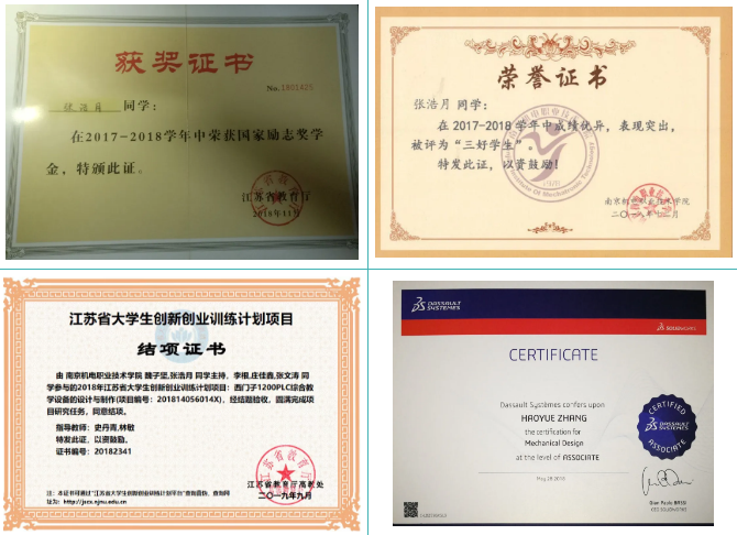 大学期间,专业成绩排名系部第二名,综合素质测评排名第一。在班级担任班长、院资助宣传大使,曾任亚搏在线单片机社团社长、蓝岛创客工坊学生负责人等。曾获得国家奖学金、国家励志奖学金、全国大学生挑战杯江苏赛区三等奖、中英STEAM江苏赛区最佳编程奖、江苏省大学生创新创业训练计划结项证书、学院奖学金、学院三好学生、学院优秀学生干部、学院优秀共青团员、社团之星、“一二九大合唱”二等奖、优秀标兵等荣誉称号。同时本人获得院优秀社会实践团队、优秀社会实践个人的荣誉称号、“欧帝杯”三创大赛优秀奖等。我所在班级在2018-2019学年被评为“江苏省省级优秀班集体”,“南京市五四红旗团支部”。