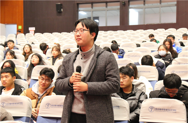 黄博结合自身经验,从制定明确的计划、全面发展、积极合作、勇于表达四个方面展开了分享。他告诫同学们应当制定明确的生活学习计划、脚踏实地的执行,面发展应当从擅长做的或喜欢做的开始;随后,他向大家进一步的讲解了在专利申请方面可以通过小组合作的方式,大家集思广益,各取所长,使得广大同学对专利的撰写有了进一步的了解;最后,他希望同学们能抓住每一次自我展示的机会,表达能力绝非一日之功,表达是一个日积月累的过程,到顶岗实习时,表达的是否清晰、过程是否紧张都有可能影响你的面试结果。