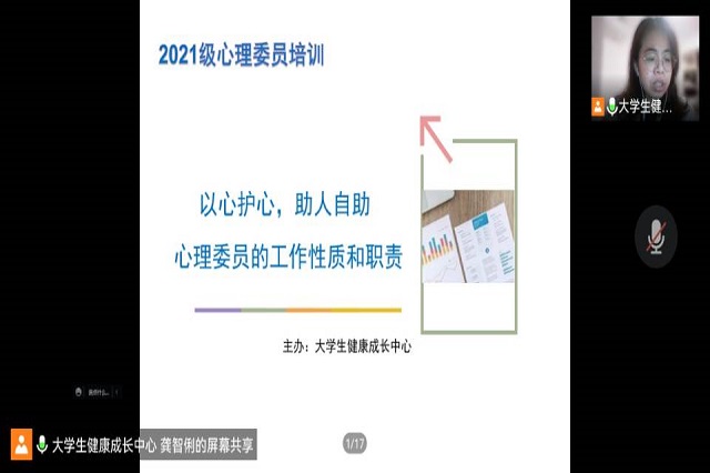 大学生健康成长中心龚智俐老师从心理委员的具体工作、工作技巧以及如何做好心理气象员这一角色等方面向同学们讲解了心理委员的工作性质和职责。