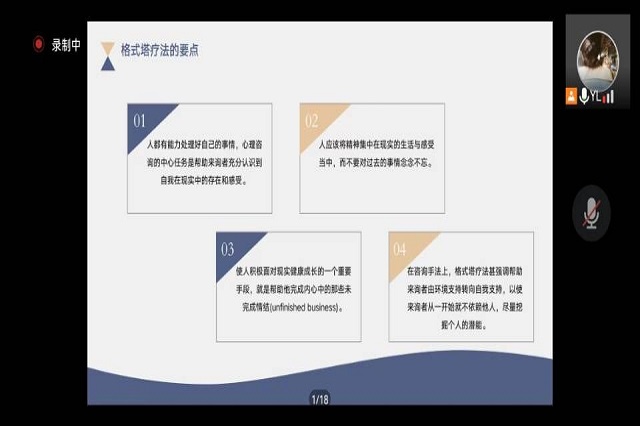 电子工程系心理辅导员刘依林老师从格式塔心理学产生的背景、格式塔疗法的原则与格式塔疗法的要点等方面向同学们介绍了格式塔在学生工作中的运用。