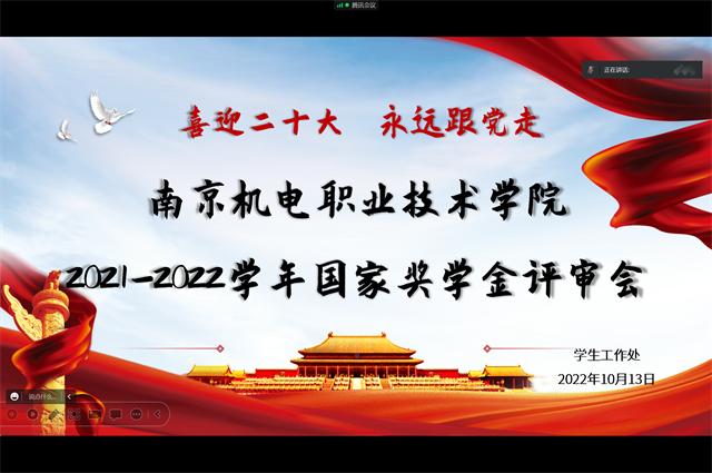 根据《省教育厅关于做好2022年普通高校国家奖学金有关工作的通知》苏教助函〔2022〕9 号、《教育部 财政部关于印发<本专科生国家奖学金评审办法>的通知》(教财函〔2019〕105号)、《江苏省学生资助资金管理办法》、《江苏省学生资助管理实施细则》文件精神,亚搏在线于2022年10月13日召开2021-2022学年国家奖学金评审会。