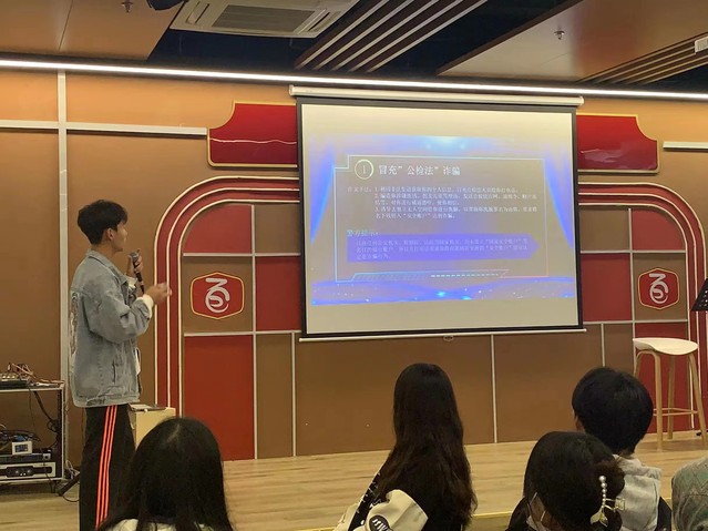 主讲人单均昶从什么是电信诈骗展开分享,通过近期我校发生的真实案例,为大家揭露各种各样的诈骗方式,详细阐述了诈骗的危害性。接着,他通报了近期发生的诈骗案件类型、手段及特点,讲解了诈骗分子是如何利用大学生的特点“乘虚而入”,并结合当前易发生在学生身上的常见诈骗案例,向现场同学讲解了冒充”公检法”、网络信贷诈骗、杀猪盘、网络游戏虚假交易诈骗、健康码骗局等几种电信网络诈骗形式,揭露了相关类型诈骗案件的作案手段,引导同学们在日常生活中提升自我辨识、自我预警、自我保护和案发后的报警、应急处置能力。