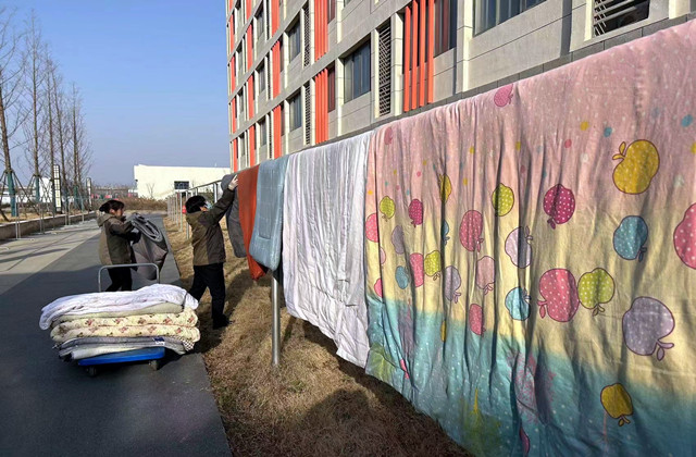 不仅是晾晒被褥,帮忙清扫房间、定期开窗通风、清除易腐烂食物、养护绿植、照顾“萌宠”,只要同学们能想到的,你得宿管“妈妈”都帮你想到了。博雅苑的赵志萍阿姨说到:“从学校搬迁到高淳后,我就开始在这里工作了,看到同学们熟悉的面孔,就像看到自己的孩子,我希望他们平安返校。阿姨在这里等着你们回来,阿姨想你们了!另外我们晒被还在持续“接单”哦,有需求的同学们可以亚搏在线(中国)哟”。