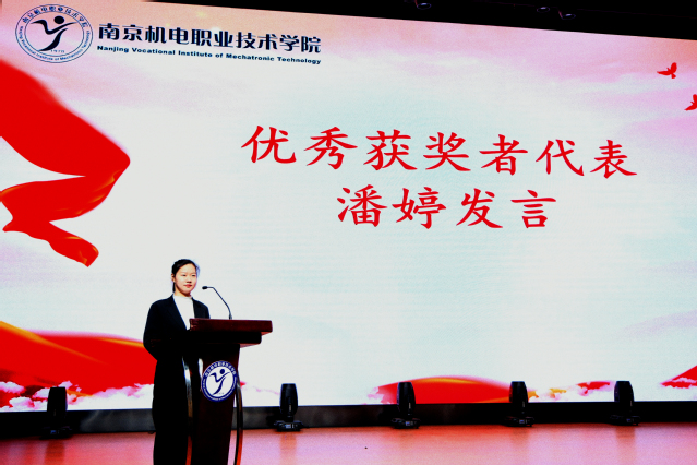 受表彰学生代表,国家奖学金、省级优秀学生干部获得者潘婷同学发言。潘婷同学从“立志、立德、立行”三个方面介绍了她的成功经验,希望同学们心怀远大志向,明确未来规划,多自省,常修正;有规矩,讲礼仪,眼中有别人,心怀敬畏感;做到自律内驱,厚积薄发,主动在知识学习与社会实践中练就真本领、增长大才干。