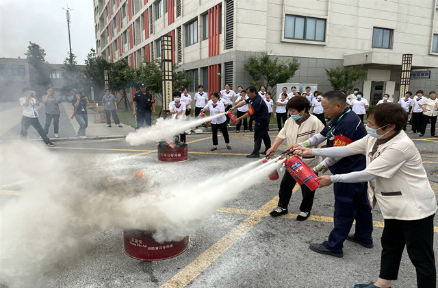 活动的最后,保卫处胡章龙老师携安保工作人员,结合团建内容为宿舍团队开展了了一场生动、实用的消防灭火课。