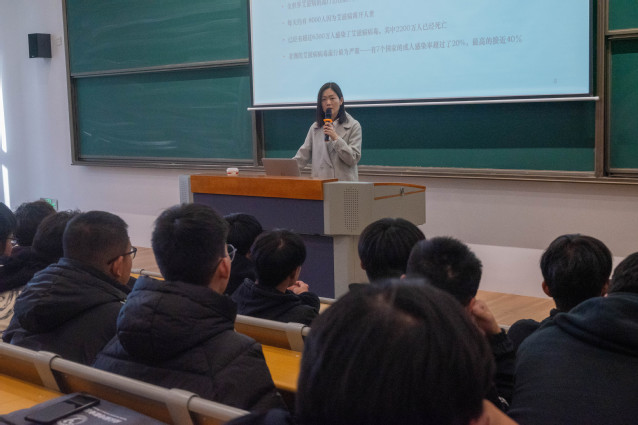 讲座从当前艾滋病感染的现状出发,通过案例分析、知识点讲解、PPT展示、现场问答等形式向同学们详细介绍艾滋病的危害性、青少年应如何防控艾滋病以及开展防治宣传教育的意义,重点讲解了艾滋病的起源、传播途径和防治措施等知识,告诫同学们要树立正确的人生观、价值观,认清艾滋病的危害,增强防艾意识,远离艾滋病。