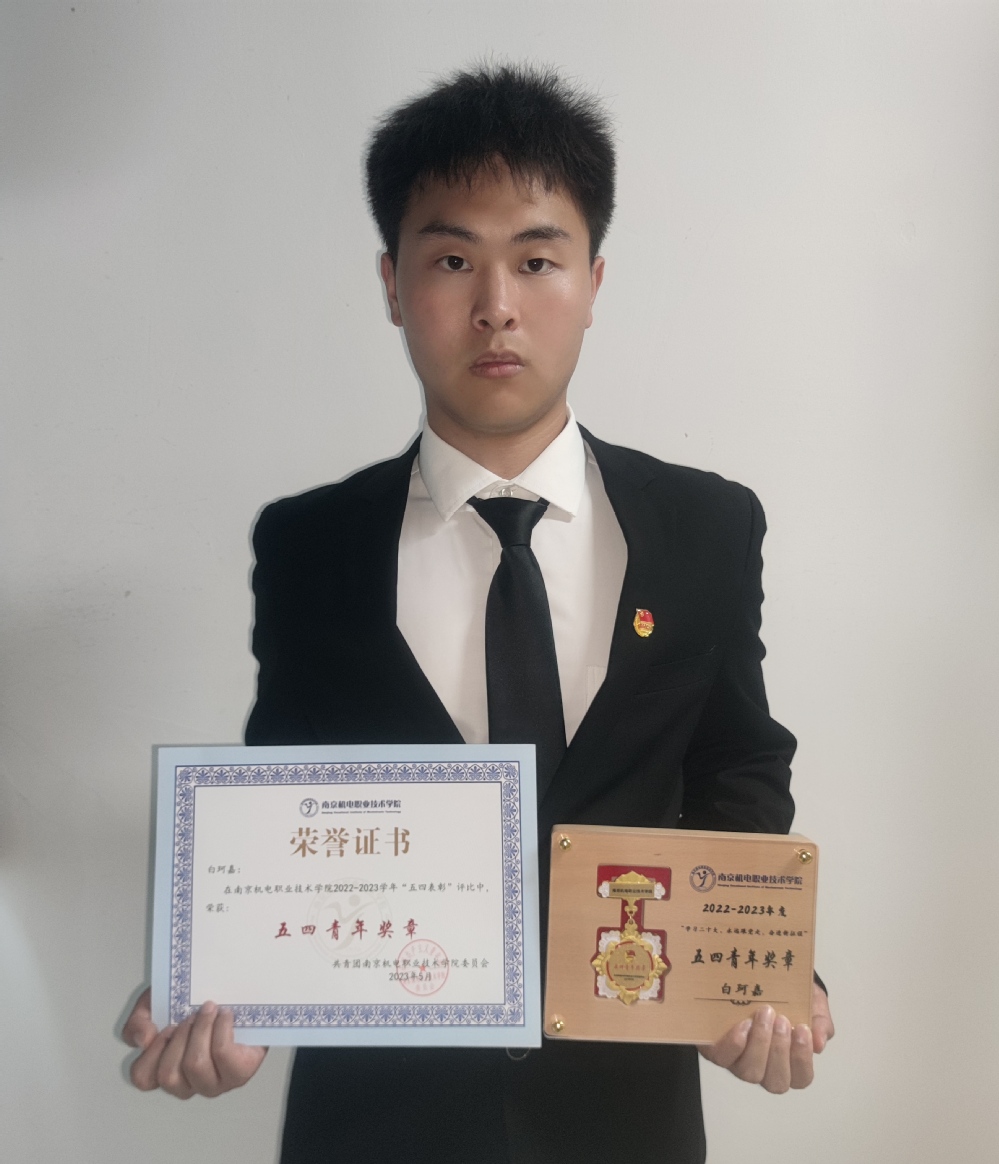 白珂嘉,男,汉族,共青团员,亚搏在线自动化工程系机电一体化技术专业2021级专科生。曾任自动化工程系团总支学生副书记,机电一体化技术217班宣传委员,润泽苑119宿舍长。荣获了“国家奖学金”等3项国家级荣誉,“第六届江苏省大学生知识产权知识竞赛优秀奖”等2项省级荣誉,“五四青年奖章”等23项校级荣誉,“高压电工上岗证”等11项技能证书,实用新型专利受理1项。