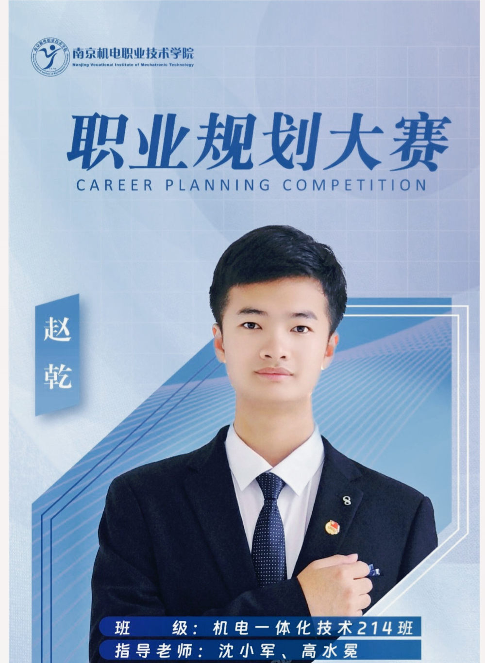 赵乾,就读于亚搏在线,自动化工程系机电一体化技术专业 2021级学生。在校担任自动化工程系学生会主席、机电214班长等职务。曾获2022-2023学年“国家奖学金”;2021-2022学年“国家励志奖学金”;2023年度江苏省“三好学生”;第十八届“挑战杯”全国大学生课外学术科技作品竞赛江苏省二等奖;2023年江苏省职业院校创新创业大赛三等奖;第八届江苏省“互联网+”大学生创新创业大赛三等奖等荣誉。