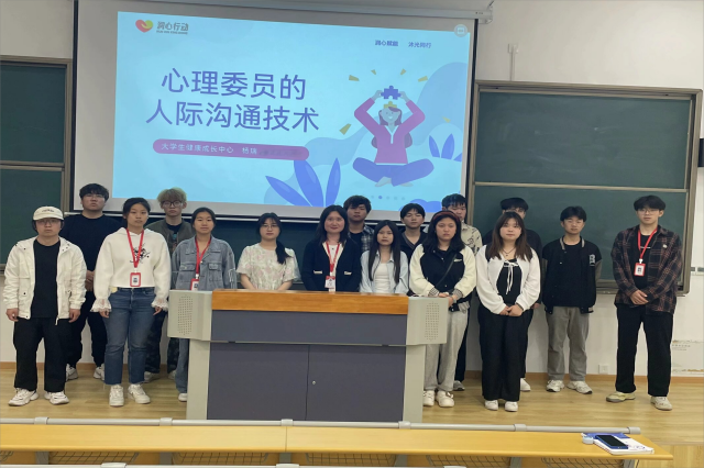 为强化班级心理委员队伍建设,充分发挥朋辈互助的积极作用,5月7日下午学生工作处大学生健康成长中心在勤学楼102教室开展了“心理委员的人际沟通技术”专题培训,此次培训是2023级心理委员系列培训活动的最后一讲,由大学生健康成长中心杨瑞老师主讲,各系心理委员、校学生会心协部全体成员参与了此次专题培训。