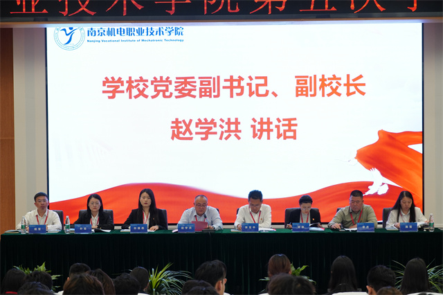 学校党委副书记、副校长赵学洪在大会上致辞。他充分肯定了学生会过去一年里在思想政治引领、校园文化建设、社会实践、志愿服务,深化组织改革、竭诚服务学生等方面的工作成效,并代表学校对广大青年学子、全校各级学生会组织提出三点希望:一是要坚持引领为先,筑牢思想政治根基;二是要坚持实践为纲,挺膺担当建新功;三是要坚持服务为本,全心全意办实事。学生会要做好“优秀学子分享会”“班长论坛”“每日思政”等亮点品牌的传承与创新,构建新时代服务同学成长成才的工作体系,为“四新”机电建设贡献青春力量,在强国建设、民族复兴的新征程上书写壮丽的青春篇章!