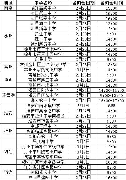 2022年我院应邀参加江苏省提前招生现场咨询会一览表