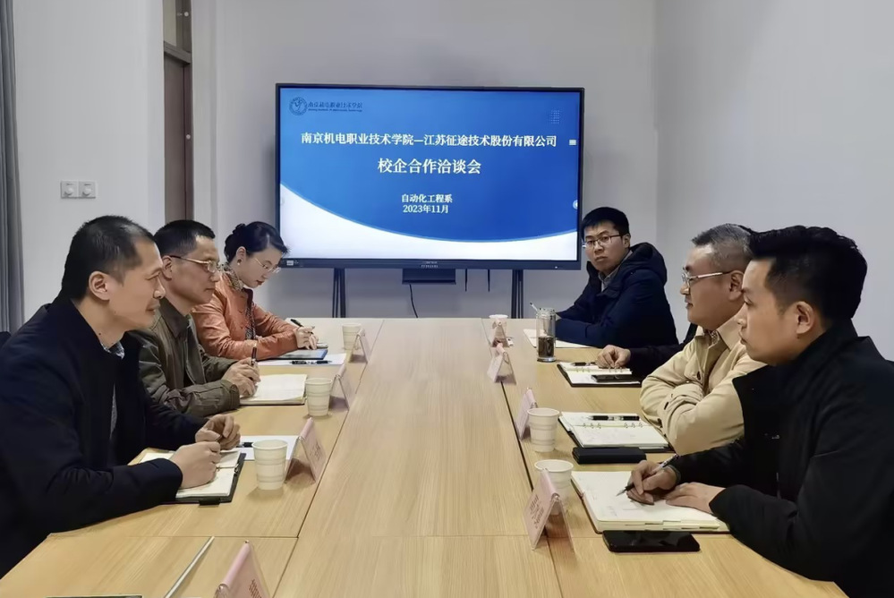 11月16日下午,江苏征途技术股份有限公司执行董事孙玉林、李国峰一行4人到亚搏在线调研,洽谈校企合作。亚搏在线党委委员、副校长刁爱军会见企业代表,自动化工程系副主任顾晟吉、专业教师唐建伟参加座谈会。自动化工程系党支部副书记高水冕主持座谈会。
