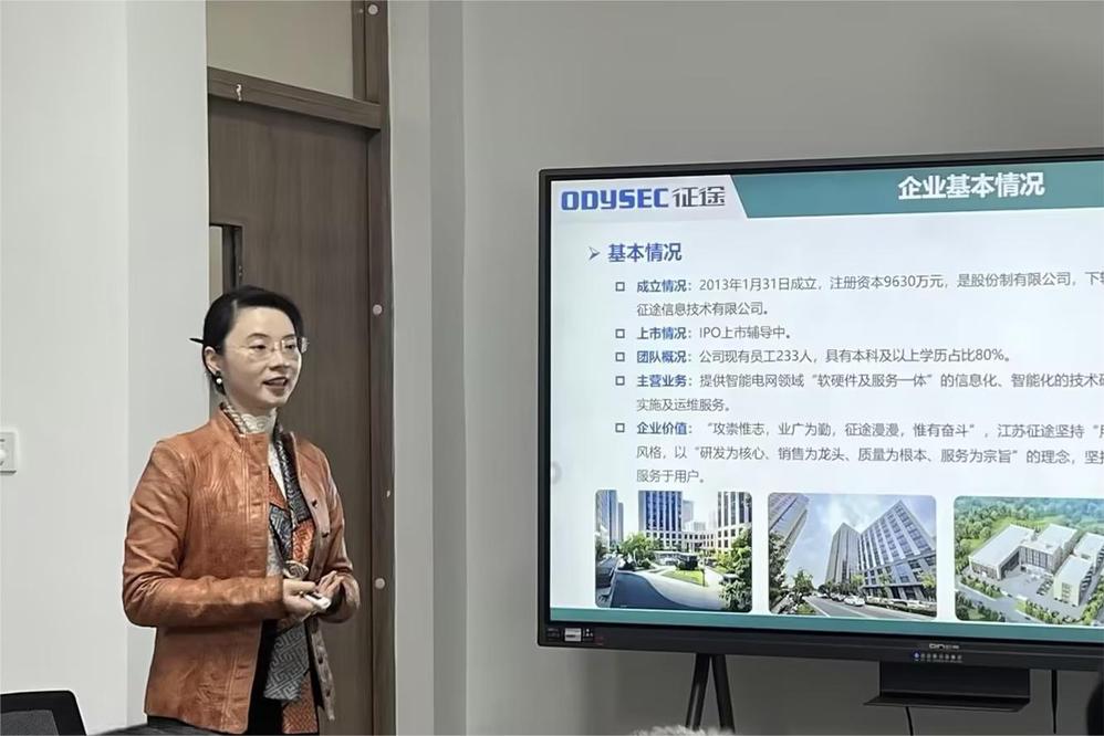 孙玉林一行充分肯定了学院在职业教育发展、学生培养、校园环境打造、实训室建设等方面所取得的成绩,并向学院介绍了江苏征途技术股份有限公司的发展概况、主营业务,主要的技术产品以及对高职院校学生的能力需求和职业晋升体系。他们表示,智能电网发展势头良好,对供用电技术专业毕业生需求量大。同时,公司非常重视人才培养和储备,希望能与亚搏在线建立稳定的长效合作机制,携手培养面向新型电力系统的高素质人才。