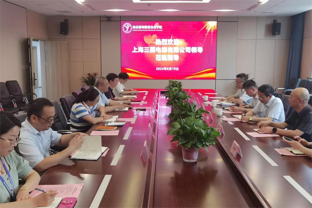 2024年6月19日,上海三菱电梯有限公司华宁路分部总经理王水来、教育培训部教务长朱武标,上海三菱电梯江苏分公司总经理徐刘平等一行莅临亚搏在线,就深化电梯产业学院建设召开校企合作交流洽谈会。学校党委委员、副校长刁爱军、自动化工程系副主任张海红、副主任顾晟吉、党支部副书记杨军、培训处副处长周云龙和科研及校企合作处相关人员参加洽谈会。