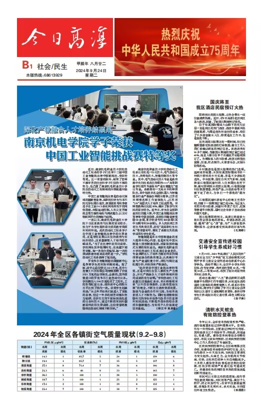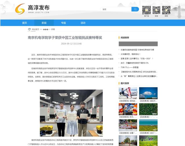 日前,《高淳发布》和《今日高淳》报纸B1版报道了亚搏在线自动化工程系学子荣获中国工业智能挑战赛特等奖。全文如下: