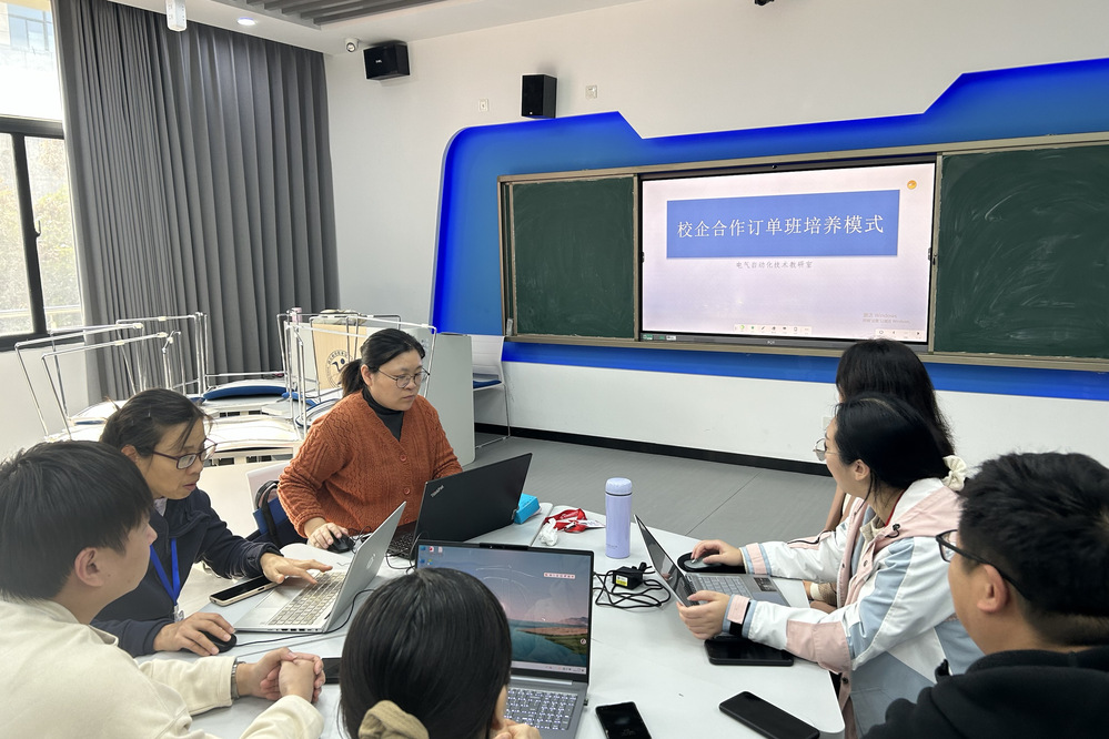 11月12日下午,电气自动化专业教研室在敏行楼205教室召开校企合作订单班培养模式教学研讨会,全体教师围绕课程案例选取、校企共建教材、订单班实操培养等核心问题展开深度研讨。