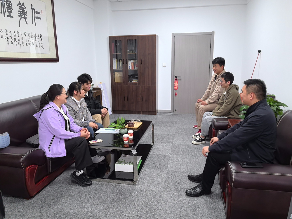 江苏三电智能工程有限公司殷涛董事长接待了张海红一行。殷涛向张海红一行介绍了企业的前身和发展历程、企业经营范围等,就自动化工程系在岗实习学生的实习岗位、实习工作状态、日常生活及安全等做了反馈。