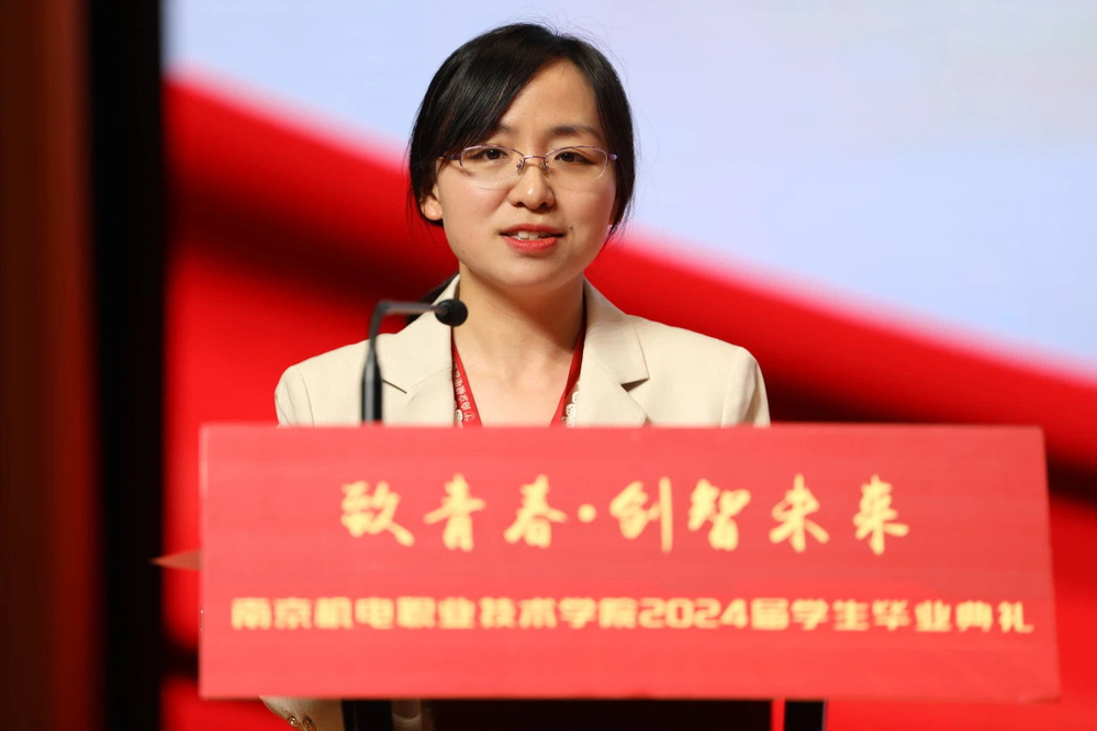 自动化工程系教师代表叶泉为毕业生送上祝福。叶泉老师从生活、工作、人际交往、职业规划四个方面为学生提供了宝贵建议,她叮嘱毕业生们要全面提升个人综合能力,找准兴趣领域与行业,认真学习,潜心钻研,增强核心竞争力。既要保持坚定的信念和热情,树立职业责任感,也要谨言慎行保持谦虚的心态。