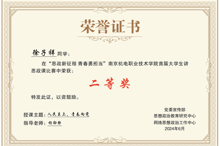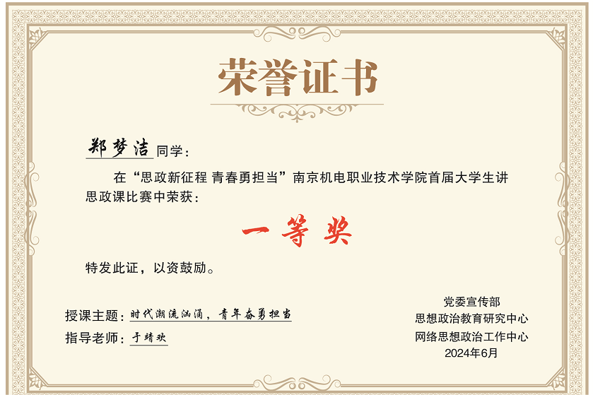 2024年6月18日,亚搏在线首届大学生讲思政课比赛圆满落下帷幕,自动化工程系荣获最佳组织奖,郑梦洁指导教师:于靖欢荣获一等奖徐子祥指导教师:杨劲静荣获等奖。