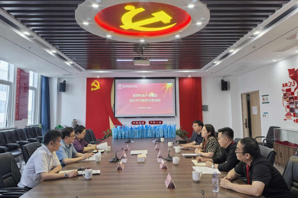 7月18日,南京机电产业集团党委副书记、副总经理、工会主席顾永宁一行到学校调研指导党纪学习教育工作。学校党委委员、纪委书记、工会主席姜振宇,党委委员、党委工作部副部长高水冕,自动化工程系党支部副书记杨军、副主任顾晟吉、组织员俞青参加了会议。