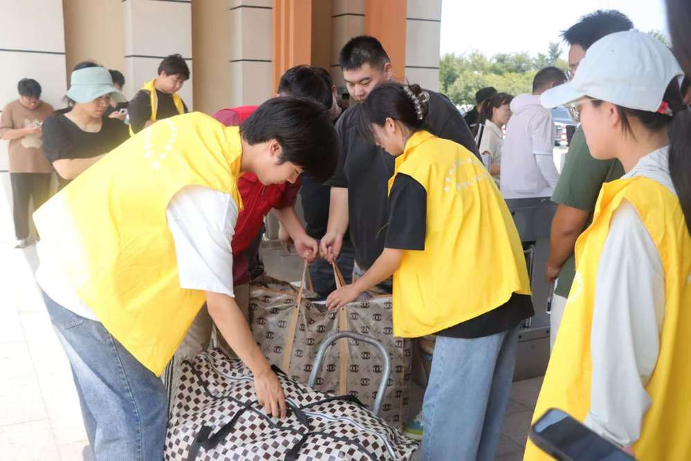 2024级机电一体化技术专业的封紫轩和智能控制技术专业的张伟逸报到后就加入了服务行列。他们表示,工作虽然很累,但能通过自己的行动给新同学带来温暖,为学校迎新工作贡献一份力量,感受到了极大的归属感与成就感。