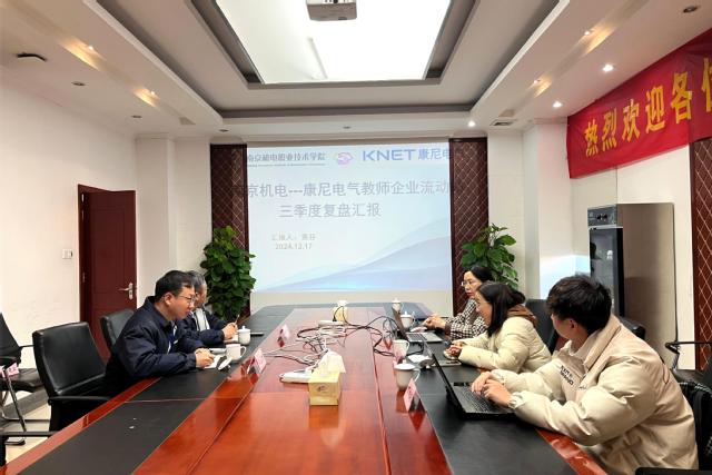 12月19日下午,南京机电—康尼电气教师企业流动站第三季度复盘会议在康尼电气成功召开。会议围绕教学资源成果、产学研项目成果、校企联合申报知识产权、校企联合发表论文成果以及下一年度展望五个方面展开深入讨论。康尼电气总经理马涛、市场部部长李向阳、技术部部长刘蔚钊,亚搏在线科研及校企合作处处长李木香、干事陈星海,电气自动化技术专业负责人袁芬、专任教师丁旭东参加会议。
