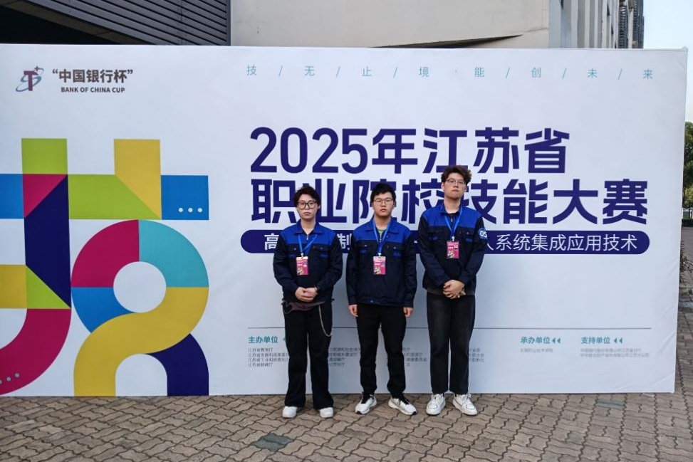 4月17日至4月18日,2025年江苏省职业院校技能大赛高职组机器人系统集成应用技术赛项在无锡职业技术学院举行,来自全省各高职院校的153名教师及学生选手同场竞技。我系机电一体化技术专业学生周冬杰、张宸榕及余涛三位同学在叶泉、蔡新宇老师的指导下获得团体三等奖,许璐、杨俊老师获得教师组团体三等奖。