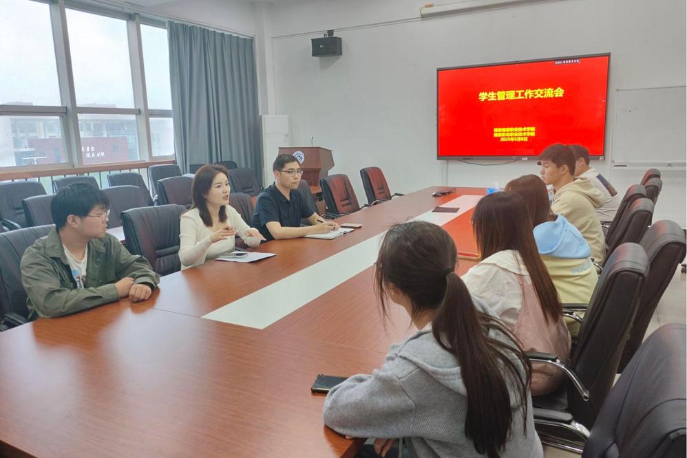 座谈会上,双方围绕学生思政教育、学风建设、心理健康服务及学生骨干培养等议题展开深入探讨。南京信息职业技术学院学生工作负责人林殷才介绍了该校“一站式”学生社区综合管理模式的建设经验,强调通过党建引领、资源下沉、服务赋能构建全员育人生态。