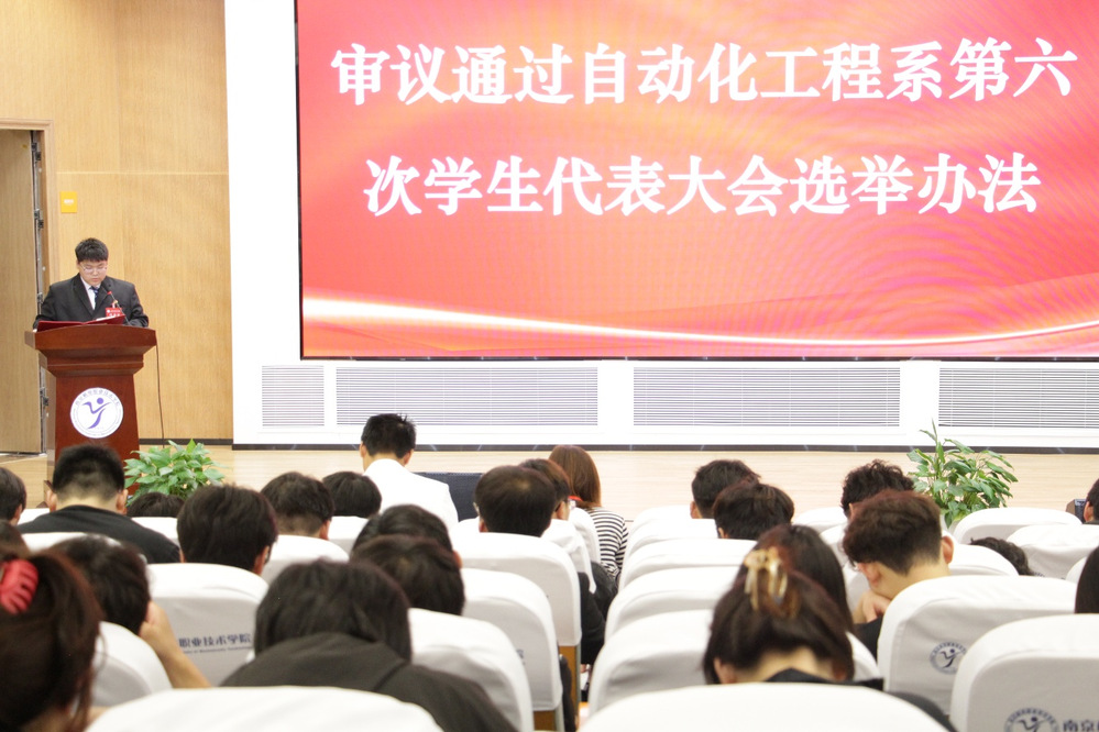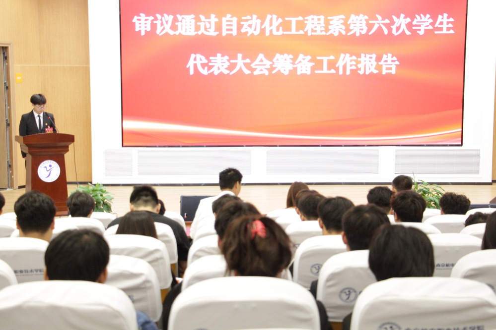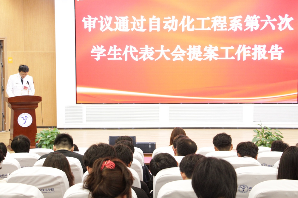 5月15日,自动化工程系第六次学生代表大会在乐学楼102报告厅召开,自动化工程系党支部副书记杨军、系学生会指导老师于靖欢和全系120名学生代表出席,大会由自动化工程系学生会主席金旺龙主持。