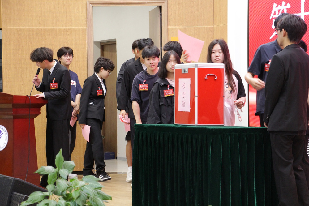 随后,大会代表审议通过了选举办法。经过宣读候选人简介、学生代表差额选举、人工计票等环节,选举产生了新一届学生委员会委员和学生会主席团成员。新当选主席团代表作表态发言,表示新一届学生会将继续发挥桥梁纽带作用,在奉献中彰显担当,在服务中实现价值,推动系学生会工作再上新台阶。