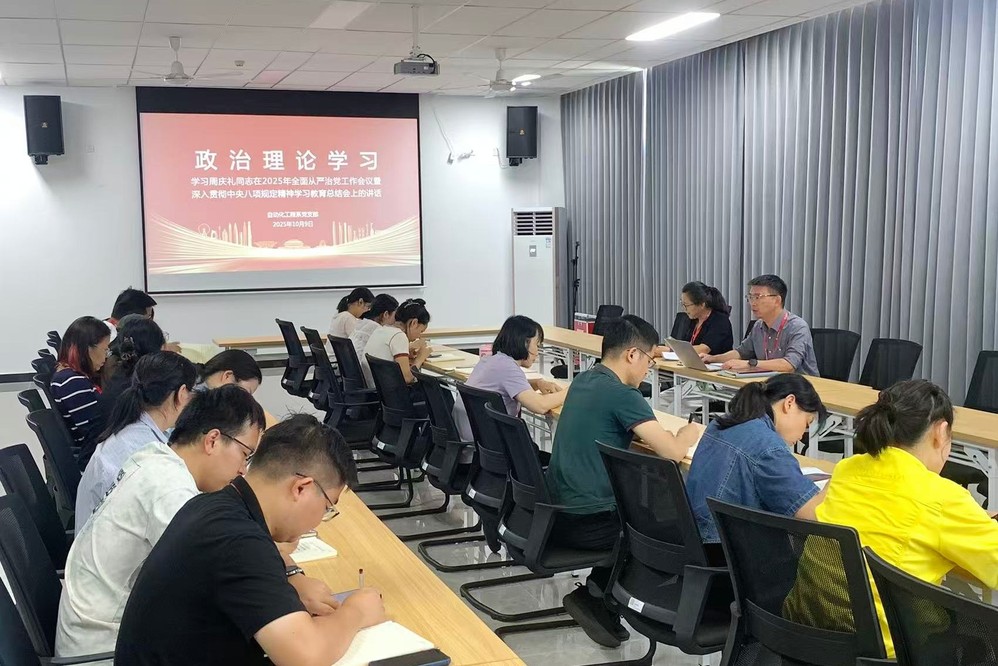 10月16日,自动化工程系党支部全体党员在敏行楼401党建会议室集中学习校党委书记、校长周庆礼同志在2025年全面从严治党工作会议暨深入贯彻中央八项规定精神学习教育总结会上的讲话。集体学习由党支部书记杨军主持。