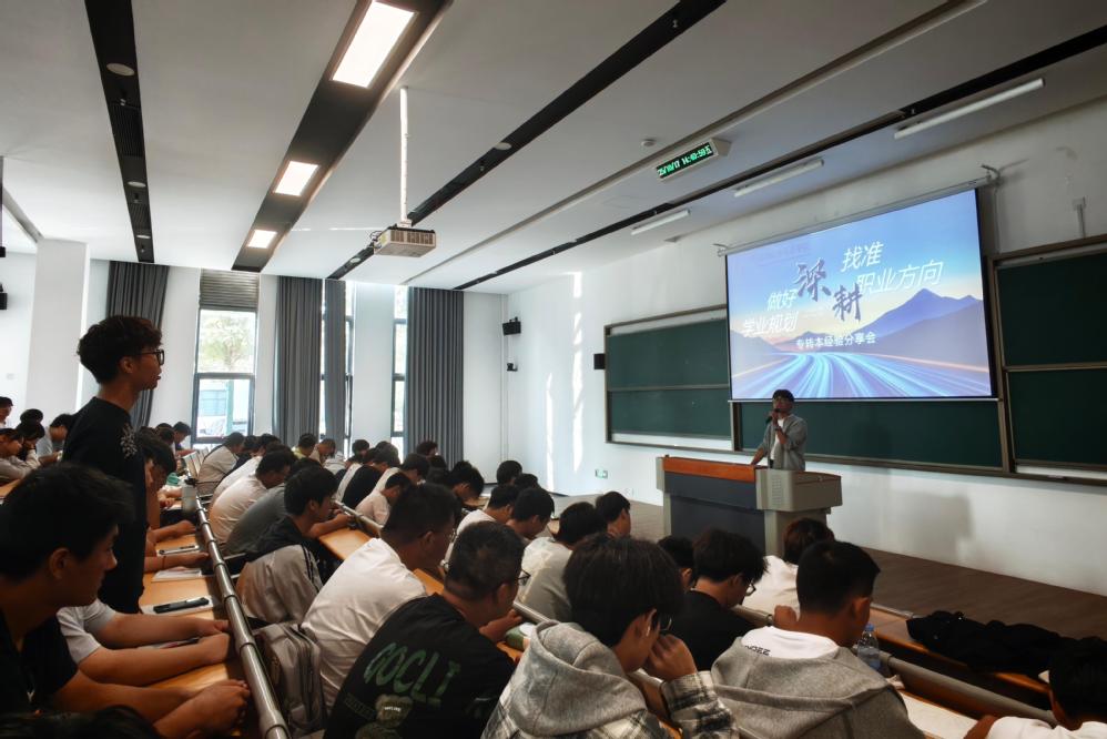 活动现场,刘尧楷同学以“我会上岸,全力以赴”为主题,结合自身扎实的备考经历,从专转本备考的战略制定、时间管理、学科学习方法等多个维度,进行了系统且深入分享。他详细阐述了如何依据自身学习特点与目标院校要求,科学制定阶段性学习计划;如何通过高效的时间分配,平衡日常学习与专项复习;并针对自动化相关专业的考试重点与难点,分享了极具针对性的复习策略与解题技巧。 在分享过程中,刘尧楷同学还着重强调了职业规划与专转本学习的关联性,引导同学们将专转本的学习目标与未来职业发展愿景相结合,以更长远的视角看待学业提升的价值。现场同学们认真记录关键要点,学习氛围浓厚。