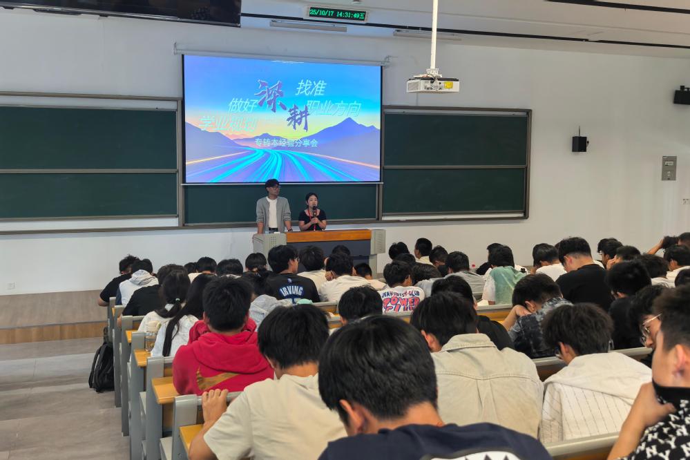 为助力同学们在学业进阶与职业发展的道路上稳步前行,10月17日,自动化工程系“做好学业规划,找准职业方向”专转本经验分享会在善学楼103教室顺利举行。活动由自动化工程系就业干事俞青主持,邀请2022级供用电技术专业学长刘尧楷担任分享嘉宾,2025级供用电技术专业全体新生共同参与。